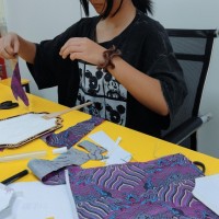 裁剪宋锦:依扇面轮廓轻绘于宋锦,裁剪时略留边幅,便于后续包边。